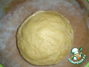Через час выкладываем тесто и обомнем его слегка.