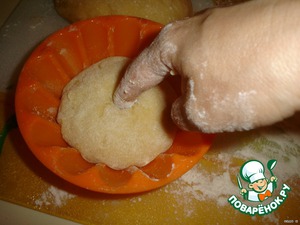 Теперь будем укладывать в формы. Теста в форму нужно класть ровно вполовину меньше формы. Тесто очень сильно поднимается и еще сильно доходит в духовке!