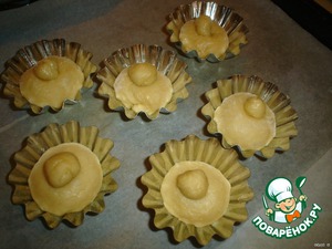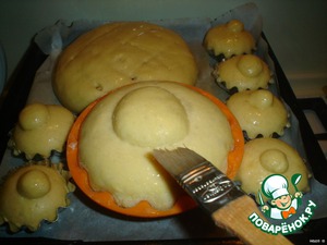 Вот какие красавцы стали! Смазываем наши изделия (перед выпечкой) желтком. Легонечко смазывайте, не давите, и чтобы желток не стекал в формы, а то потом из формы не извлечете изделие.