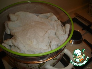 Накроем влажной салфеткой. Поставим в теплое место на 1 час. У меня рядом с включенной конфоркой.