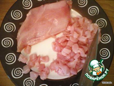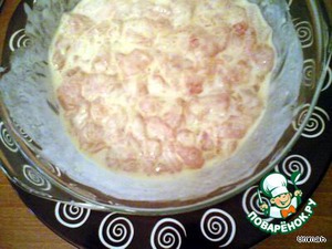 В миску разбить яйцо, размешать вилкой, добавить сметану (или майонез), муку, соль - всё хорошо перемешать до однородной консистенции. Мясо добавить в миску к полученной смеси и ещё раз хорошо перемешать. Оставить на 10-15 мин настояться.