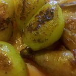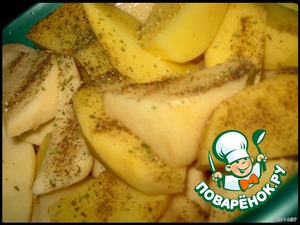 Половину ингредиентов для соуса выкладываем в картофель... перемешиваем.