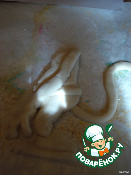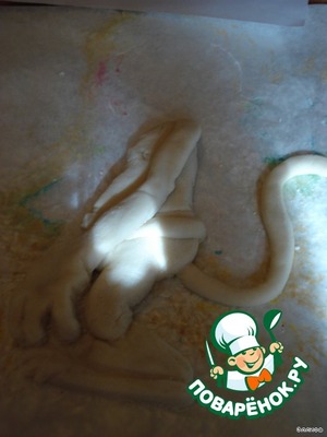 Раскатываем тесто в жгутик и формируем из него хвостик.