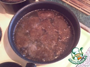 Выкладываем мясо, жарим 10 минут, переворачиваем (мясо подрумянивается), жарим еще 10 минут.
