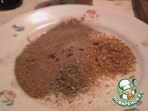 - Специи (я беру смесь перцев, молотый черный перец, приправу для гриля, пару ягод можжевельника, майоран)