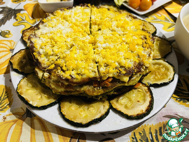 Блины получаются нежными такими, даже не сразу разберешь, что сделаны из кабачков) А помидоры между коржами я сначала обжаривала на сковородке, приправив перцем и солью - так вкуснее!