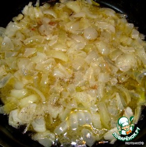 Когда лук стал прозрачным, добавляем соль, перец и вино. Прогреваем все еще пару минут