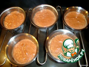 Разливаем получившуюся смесь в формочки. В противень наливаем воды и ставим в него выпекаться наш паштет. Выпекать нужно при 180 - 200 гр минут 30. Сверху перестает выделятся сок - значит готово!