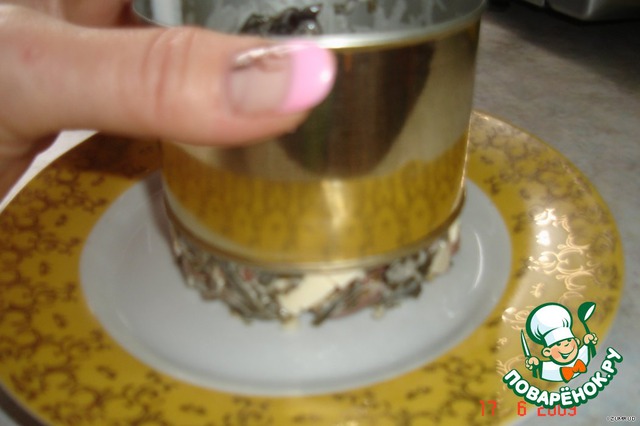 поставить её на середину тарелочки и утрамбовать в неё салат -