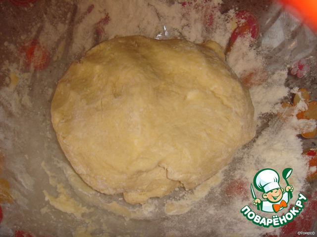 • Взбитую массу добавить в маргарин и замесить тесто. Тесто не крутое. Отправляем тесто в холодильник на 1 час.