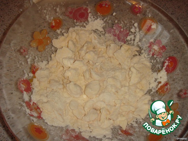 • Маргарин порубить с мукой.
