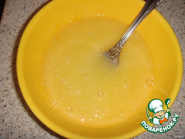 • Яйцо взбить с сахаром (150 гр.) и ванильным сахаром.
