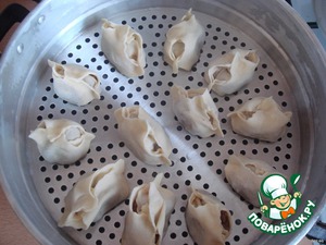 Готовую "мантушку" окунаем донышком в растительное масло и ставим на мантоварку. И так все остальные.