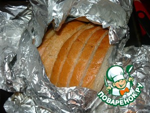Вынуть батоны, развернуть фольгу, приоткрыть немного, и поставить в духовку еще на 10 минут.