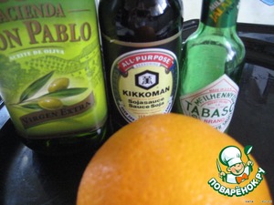 ...замариновать в апельсиновом соке, с добавлением оливкового масла, соевого соуса и "табаско".