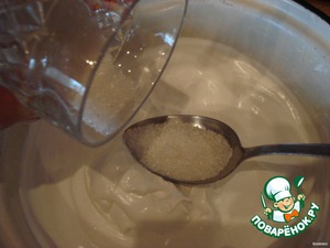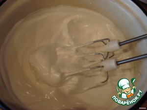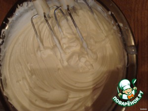 Охлаждаем яичные белки до 4-6 гр. и взбиваем до устойчивой пены.
