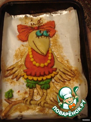 Раскрашенную птичку отправляем еще раз в духовку на 10 мин.
