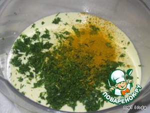 • Добавить мелко нарезанную или измельченную в блендере зелень.Я еще добавила куркумы.