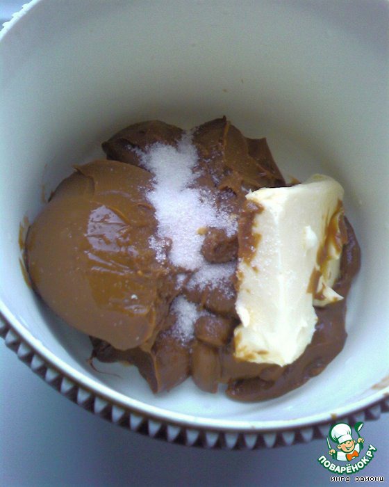 Для второго крема смешать сгущенку и размягченное сливочное масло.