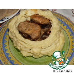 Гнездо сделано из пюре, подстилка-грибы белые, а яйца-котлетки. В общем, кому стало интересно заглядывайте.