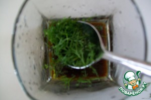 выжимаем сок лимона,добавляем 4 столовые ложки бальзамического уксуса, 1 ст ложку масла оливкового и свежий нарезанный укроп