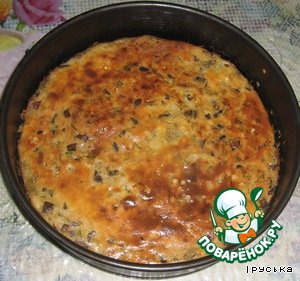 Смешайте желток со сметаной и смажьте пирог. Выпекать в духовке 40-50 мин при 170-180 градусов до румяной корочки.