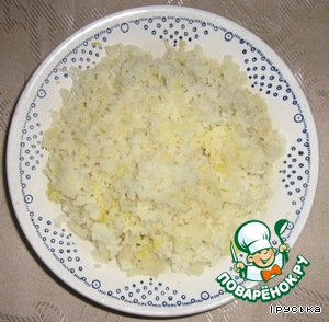 Очищенный картофель отварите в подсоленной воде и натрите на мелкой терке.