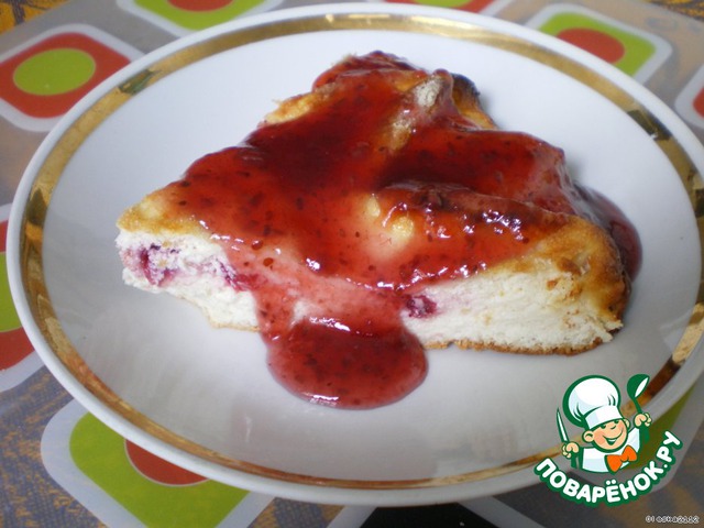 Запеканка на завтрак с малиной протёртой с сахаром. Можно со сгущёнкой, сметанкой. Но у моих сегодня желание было таким.:-)