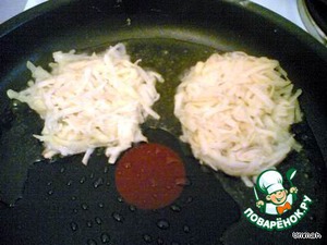 На разогретую сковороду с растительным маслом выкладывать столовой ложкой полученную массу, слегка предавая форму придавливая.