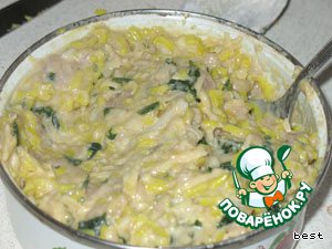 Добавить взбитое яичко, молотый перец, муку, тертый сыр, растительно масло, соль, специи. Хорошо все помните руками, смочив их в воде. -
