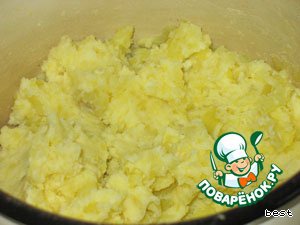 Отварить картофель и приготовить пюре с добавлением сметаны.