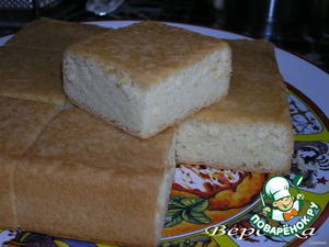 1. Остывший корж разрезать на квадратики или прямоугольнички.