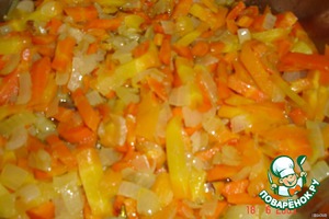обжарить лук с морковью до полуготовности. -