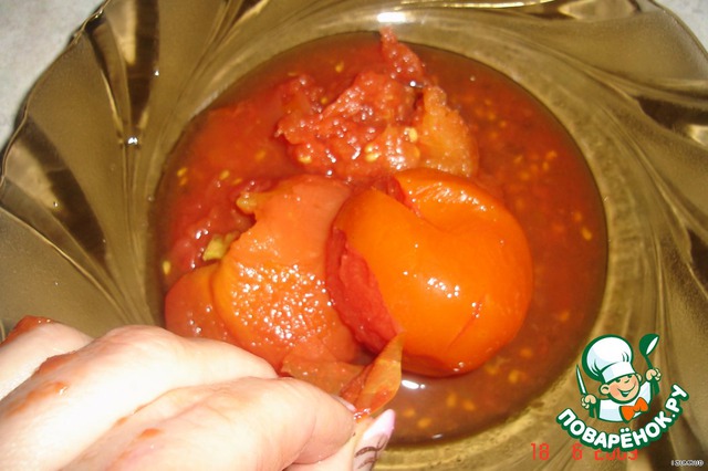 - Томаты в собственном соку — 1 бан.