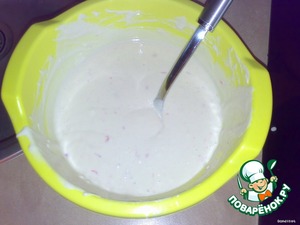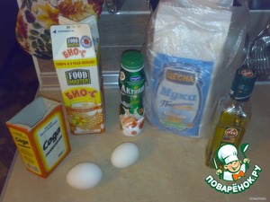 1. Смешиваем продукты (БИОС, активия, сода перемешать дать постоять 1 минуту. Затем добавить яйца, соль и муку до образования теста (консистенции густой сметаны).