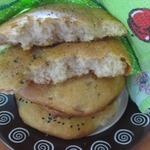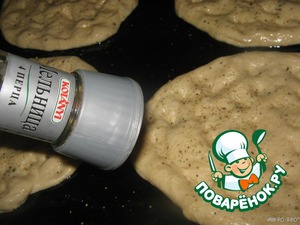 Две лепешки посыпала кунжутом, две как по рецепту, смесь перцев.