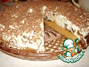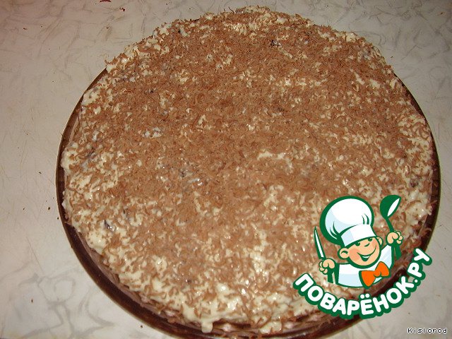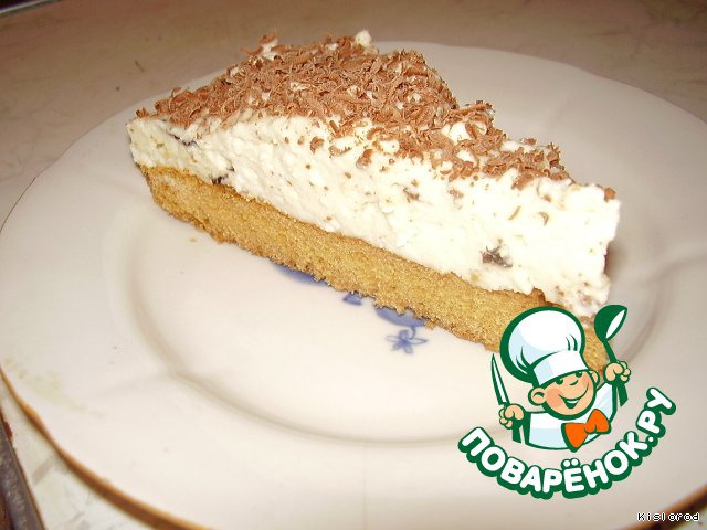 на остывший корж выложить начинку, разровнять (при желании корж можно пропитать любым сиропом)