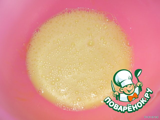добавить сахар, муку, крахмал, разрыхлитель для теста