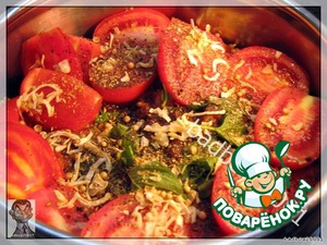 в скороварку на дно кладем немного помидор, чуть воды, и мясо,выливаем помидорную массу, что из банки, сверху лук, еще помидоры и специи