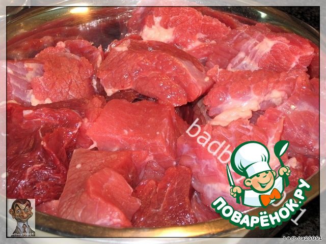 - Говядина (мясо без костей, вырезка) — 1,5-2 кг