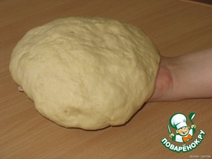 Для начала нам нужно приготовить тесто. Для этого немного (37-38 градусов) нагреваем молоко. Растворяем в нем дрожжи. В отдельной мисочке взбиваем яйцо, сахар, соль и растительное масло. Соединяем яичную смесь и молоко. Начинаем понемногу добавлять просеянную муку. Вымешиваем мягкое тесто, которое не прилипает к рукам и столу. Тесто вымешивать нужно довольно долго (минут 20), так как оно очень любит руки и их тепло. Тесто кладем в миску, накрываем полотенчиком (чтоб не заветрилось) и ставим в теплое место (у меня стояло в духовке при 60 градусах). Дать тесту подойти в 2-3 раза, на это требуется приблизительно 1 час. Затем достаем тесто, обминаем его и снова ставим в теплое место подниматься. Еще раз ждем подъема теста в 2-3 раза. В это время готовим начинку.