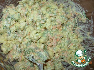 Свежую цветную капусту помыть, разделить на маленькие соцветия.