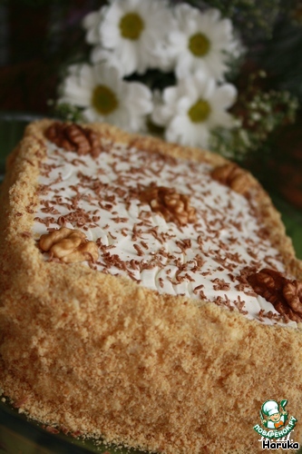 Шоколадом смазала только один корж, затем остальной шоколад свернулся. Вместо сливок- взбитая сметана: крем-фреш.