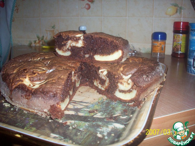 Рецепт «Шоколадные брауни с творогом и кремом»: