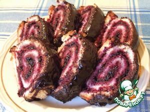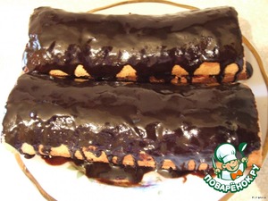 Он у меня получился слишком длинный и я его разрезала на два рулета. Сверху я залила его глазурью и отправила в холодильник для застывания глазури.