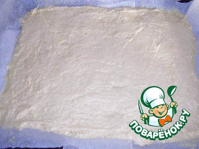 противень выстелить пергаментной бумагой и разложить на ней равномерно тесто