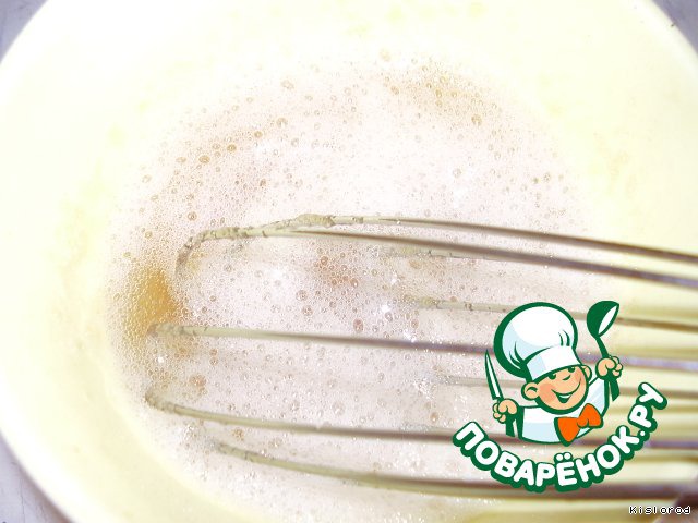 постоянно взбивая, ввести по одному яйца, соль, молоко