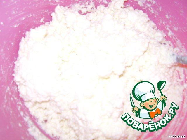 приготовить начинку: для этого творог смешать с половиной сахара, сливки взбить со второй половиной сахара и соединить все ингредиенты