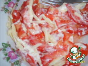 Также трескаем салатик из помидоров с сыром и чесноком....