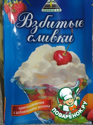 Для крема я использовала готовые сухие сливки для взбивания. Лишь растворила их в холодном молоке и взбила миксером.